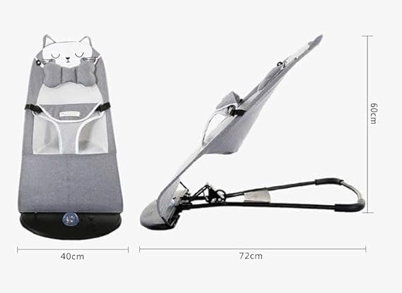 - Designed for convenience, this baby bouncer is lightweight and foldable, making it easy to carry or store. The removable fabric cover is machine-washable for effortless cleaning.