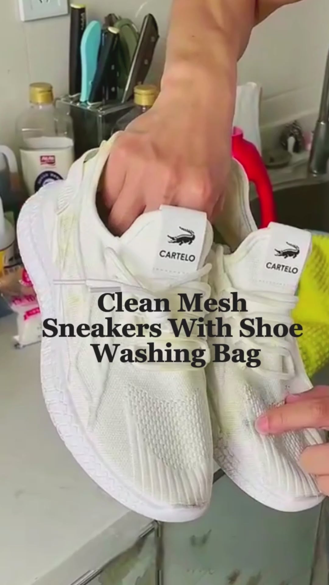 After cleaning, you can hang the washing machine shoe bag on a hook to dry easily!